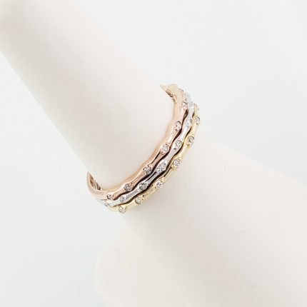 Anillo Estilo Bambú c/ Diamantes (0.06 Ct) – Oro 14Kts