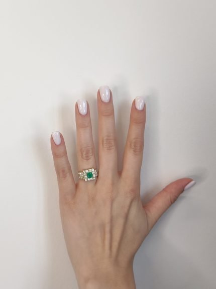 Anillo c/ Esmeralda Cuadrada & Halo c/ Diamantes Pave – Oro Amarillo 18Kts