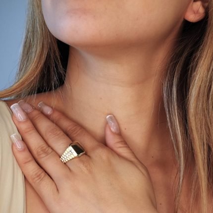 Anillo (13 mm) Caballero c/ Rectangulo & Eslabones Rigidos – Oro Amarillo 14Kts