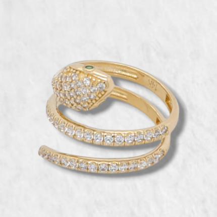 Anillo Serpiente Espiral c/ Zircones Pave – Oro Amarillo 14Kts