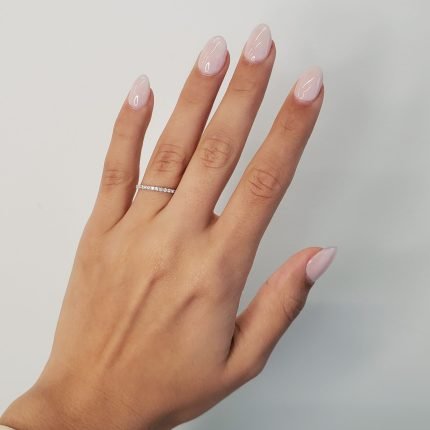 Anillo Cintillo Churumbela Curva c/ Diamantes – Oro Blanco 14Kts
