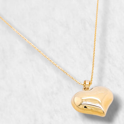 Cadena Tejido Cable c/ Dije Corazon Puff – Oro Amarillo 14Kts