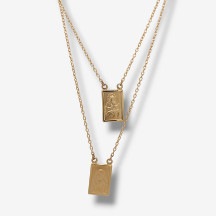 Cadena (70 cm) c/ Escapulario Virgen del Carmen & Corazon de Jesus – Oro Amarillo 18Kts