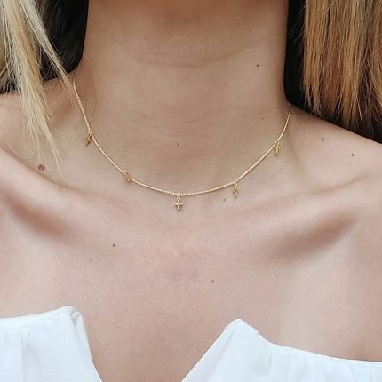 Cadena (40 cm) Mini Rolo c/ Cruces Mini (Ajustable) – Oro Amarillo 14Kts