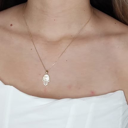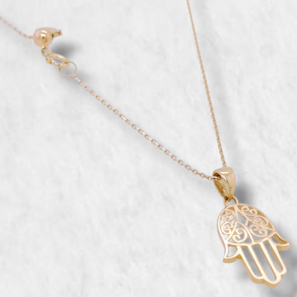 Cadena Ajustable (42 cm) c/ Mano Hamsa Filigrana – Oro Amarillo 14Kts