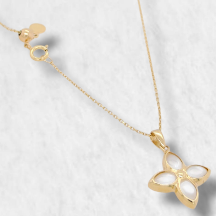Cadena Ajustable (42 cm) c/ Dije Flor Madreperla – Oro Amarillo 14Kts