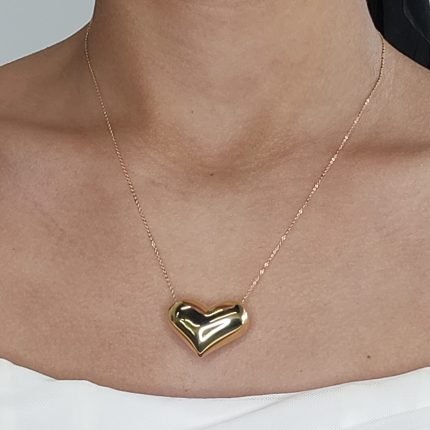 Cadena (45 cm) Corazon Jumbo Puff Pasante – Oro Amarillo 14Kts