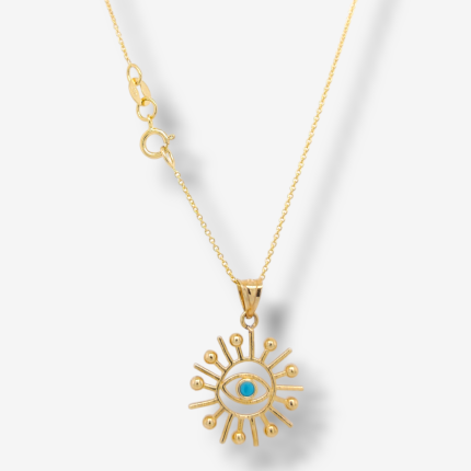 Cadena (40 cm) Tejido Rolo c/ Ojo Turquesas – Oro Amarillo 14Kts