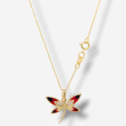 Cadena (40 cm) Tejido Rolo c/ Libelula Esmaltada – Oro Amarillo 14Kts