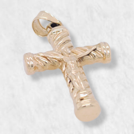 Crucifijo (18 x 21 mm) Tubo Media Cana Acanalado (4.4 mm) – Oro Amarillo 14Kts