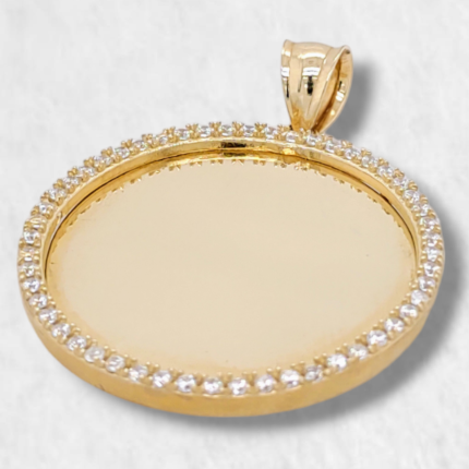 Medalla (34 mm) Lisa c/ Marco US Link Zircones (Personalizado) – Oro Amarillo 14Kts