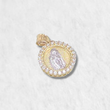 Medalla (13 mm) redonda Virgen Guadalupe c/ Zircones – Oro Dos Tonos 14Kts
