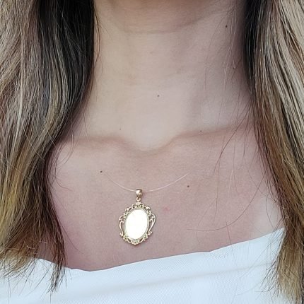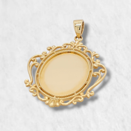 Medalla (20 x 24 mm) Lisa c/ Marco Rococo (Personalizar) – Oro Amarillo 14Kts