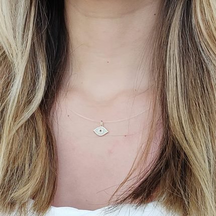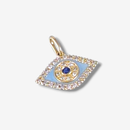 Dije Ojo Turco c/ Zafiro, Diamante & Esmalte Turquesa – Oro Amarillo 14Kts