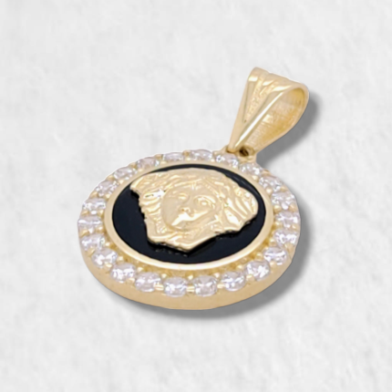 Medalla (14 mm) Marco c/ Zircones, Esmalte & Medusa – Oro Amarillo 14Kts