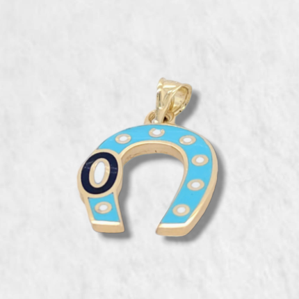 Dije (14 x 16 mm) Herradura c/ Esmalte Turquesa & Blanco – Oro Amarillo 14Kts