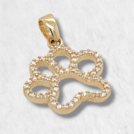 Dije (9 x 8 mm) Huella Perro Silueta c/ Zircones – Oro Amarillo 14Kts