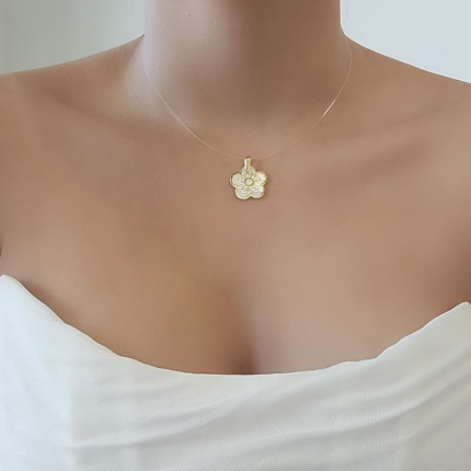 Dije (18 x 18 mm) Flor Madreperla – Oro Amarillo 18Kts