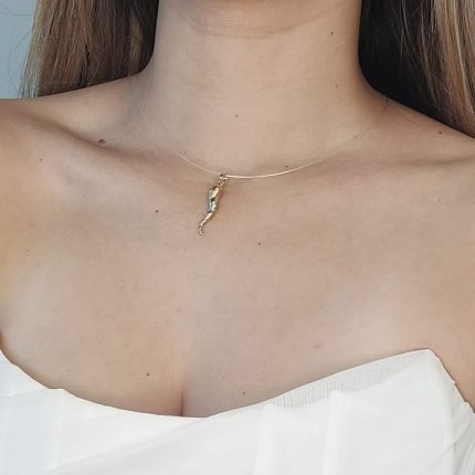 Dije (6 x 27 mm) Cuerno de la Suerte Liso/Satinado – Oro Tres Tonos 14Kts