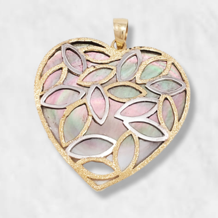 Dije Corazón Madreperla Con Hojas Caladas – Oro Amarillo 14 Kts