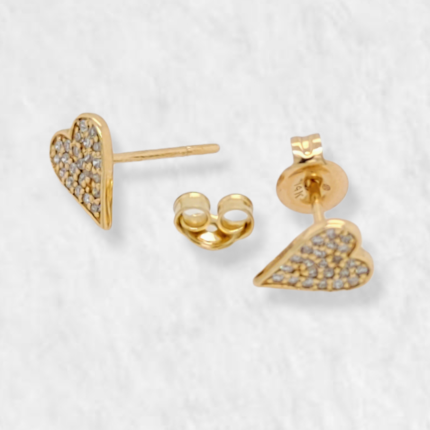 Zarcillos Post Corazón c/ Diamantes Pave – Oro Amarillo 14Kts