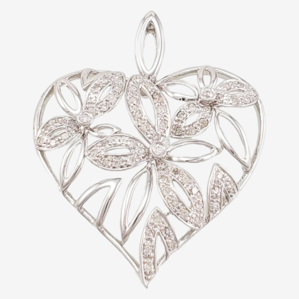 Dije Corazon con Petalos y Diamantes – Oro Blanco 14Kts