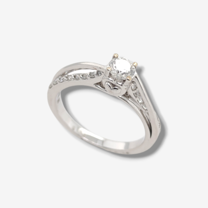 Anillo de Compromiso c/ Aro de Diamantes & Corazones – Oro Blanco 14Kts