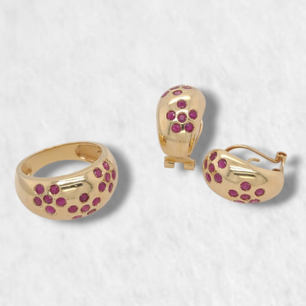 Set Anillo & Zarcillos Omega c/ Rubies – Oro Amarillo 18Kts