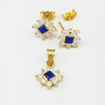 Sets Zarcillos & Dije c/ Zircones Blancos/Azules – Oro Amarillo 18Kts