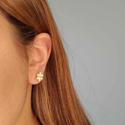 Zarcillos (5 x 5 mm) Flor 5 Petalos Bold Mediana (Screback/Abridores) – Oro Amarillo 18Kts