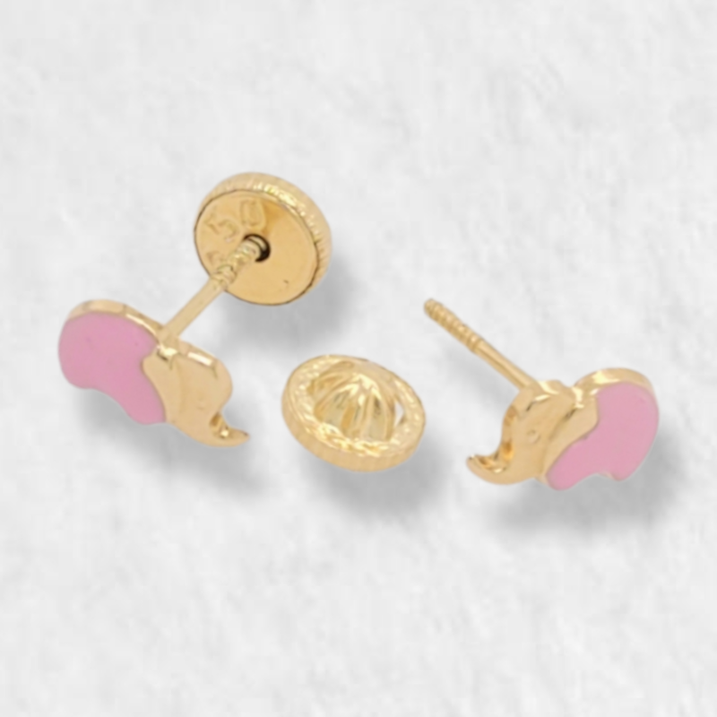 Zarcillos Elefante c/ Esmalte Rosa (Abridores/Screwback) – Oro Amarillo 18Kts