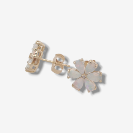 Zarcillos (11.2 mm) Post Flores Petalos de Opalos c/ Diamantes Central – Oro Amarillo 14Kts