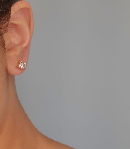 Zarcillos/Screwback Piochas 4 Prongs c/ Zircon Base Cuadrada – Oro Amarillo 14Kts