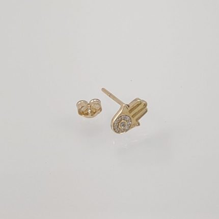 Zarcillo Post Unitario Mano Hamsa c/ Diamantes – Oro Amarillo 14Kts