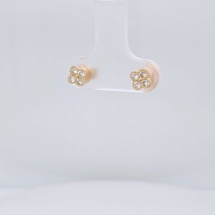 Zarcillos Treboles c/ Diamantes (Post) – Oro Amarillo 14Kts