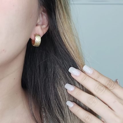 Huggies (17 mm) Reversibles (Liso/Satinado) Lineas Diagonales – Oro Amarillo 14Kts