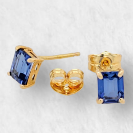 Zarcillos (4 x 5 mm) Zafiros Azules Rectangulares (Post) – Oro Amarillo 18Kts