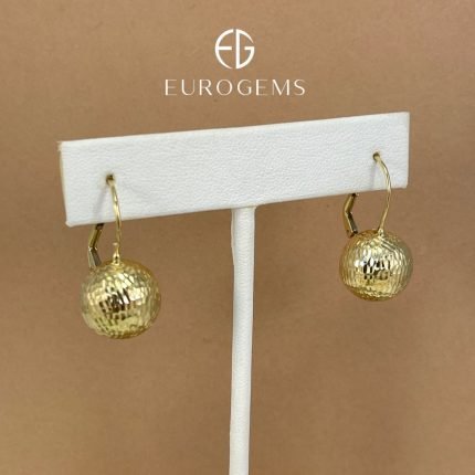 Zarcillos (13 mm) Esferas Diamantadas c/ Cierre Catalan – Oro Amarillo 14Kts
