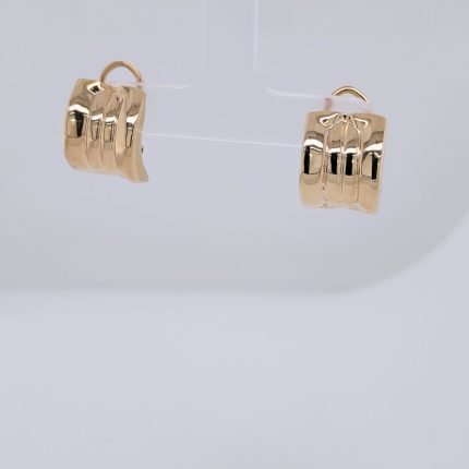 Zarcillos (12 x 17 mm) Media Cana Acanalada c/ Cierre Omega – Oro Amarillo 14Kts
