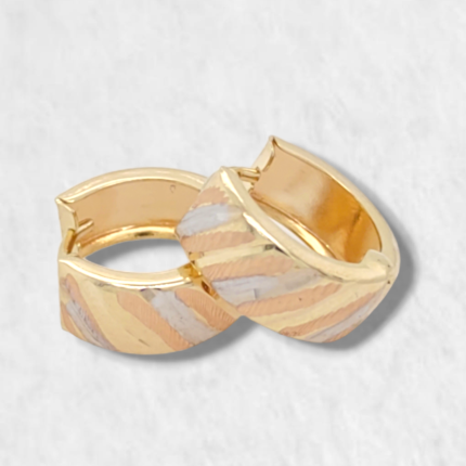 • Argollas (20 mm) Tres Lineas Media Cana Cruzadas - Oro Tres Tonos 14Kts Argollas (20 mm) Tres Lineas Media Cana Cruzadas - Oro Tres Tonos 14Kts $510.00