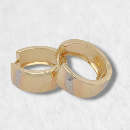 Huggies (15 mm) Lineas Diagonales Diamantadas & Satinadas (6 mm) – Oro Tres Tonos 18Kts