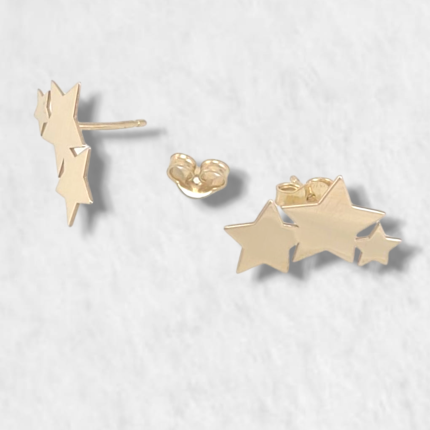 Zarcillos Post Tres Estrellas (19x11mm) Planas – Oro Amarillo 18Kts