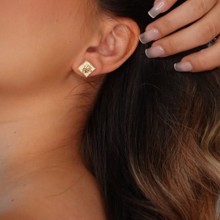 Zarcillos (10 x 10 mm) Cuadrado Zircones Pave c/ Corona – Oro Amarillo 14Kts