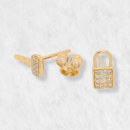 Zarcillo Post LLave y Candado con Diamantes – Oro Amarillo 14 Kts