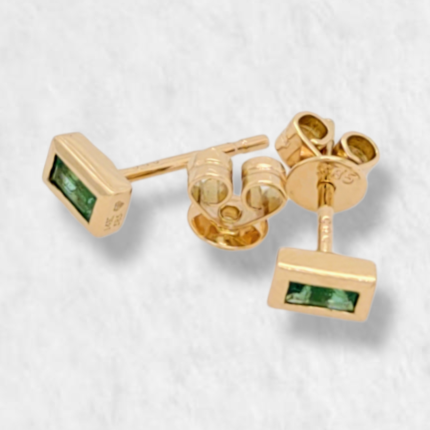 Zarcillos (3 x 6 mm) Esmeralda Rectangular (Post) – Oro Amarillo 14Kts