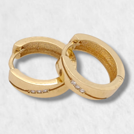Huggies (13 mm) Linea Diagonal c/ Zircones – Oro Amarillo 18Kts