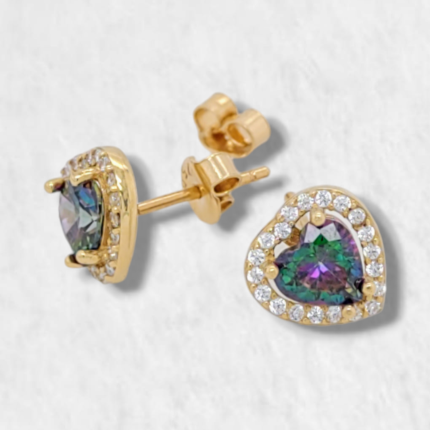 Zarcillos Post Corazón c/ Diamantes Pave – Oro Amarillo 14Kts