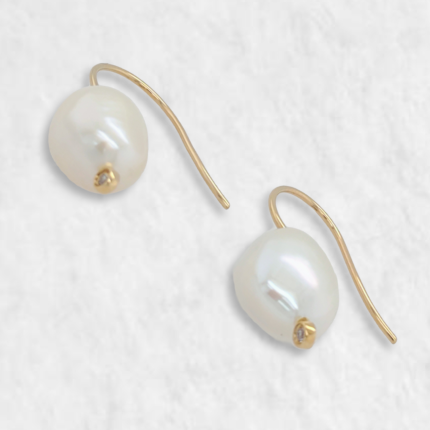 Zarcillos (HOOK) Perla Barroca c/ Diamante – Oro Amarillo 14Kts