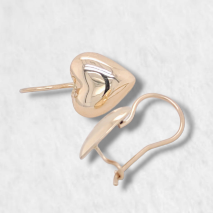 Zarcillos (11 x 10 mm) Corazones Puff c/ Cierre Hook – Oro Amarillo 14Kts
