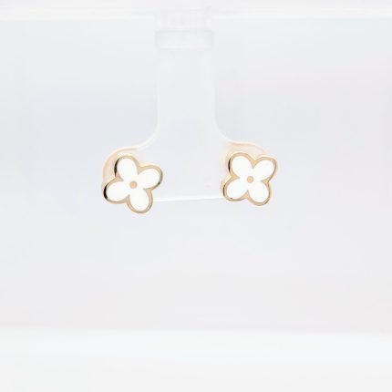 Zarcillos (9 x 9 mm) Flor c/ Esmalte Blanco (Post) – Oro Amarillo 14Kts